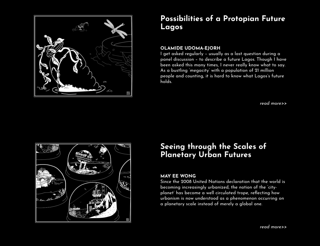 My essay “Seeing Through the Scales of Planetary Urban Futures” is in conversation with essays by Gökçe Günel, Orit Halpern and Olamide Udoma-Ejorh as well as Michaela Büsse’s short film on Forest City “Overcast” and Dele Adeyemo’s two films on the interlinkages between Lagos and the Niger Delta. This dispatch is co-commissioned by Nadia Christidi and Özgün Eylül İsçen and illustrated by Tal Halpern.