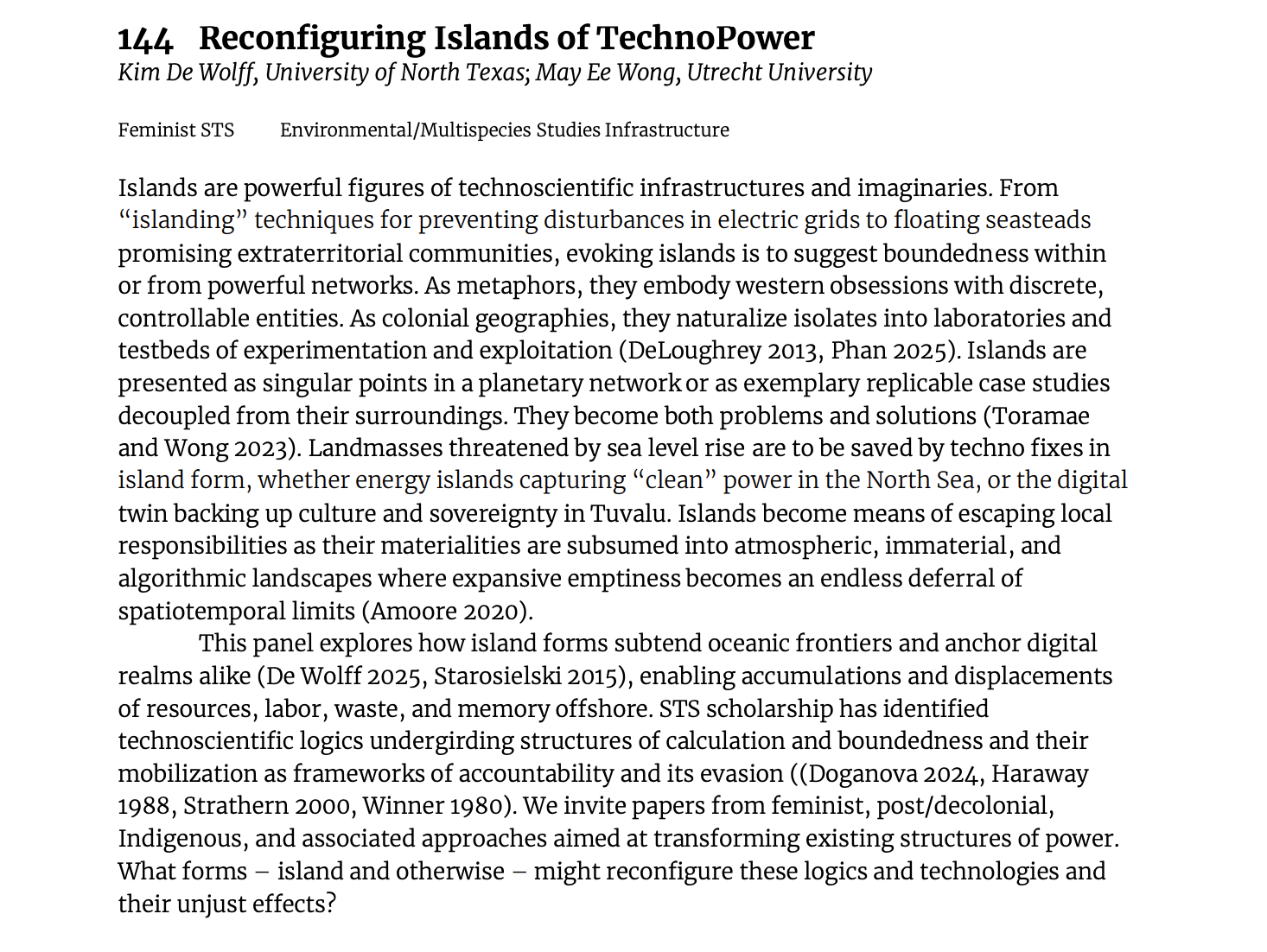 Corollary to our “Catalyst” CFP, Kim de Wolff and I have set up an open panel for 4S 2026 in Toronto: Panel 144 Reconfiguring Islands of Technopower